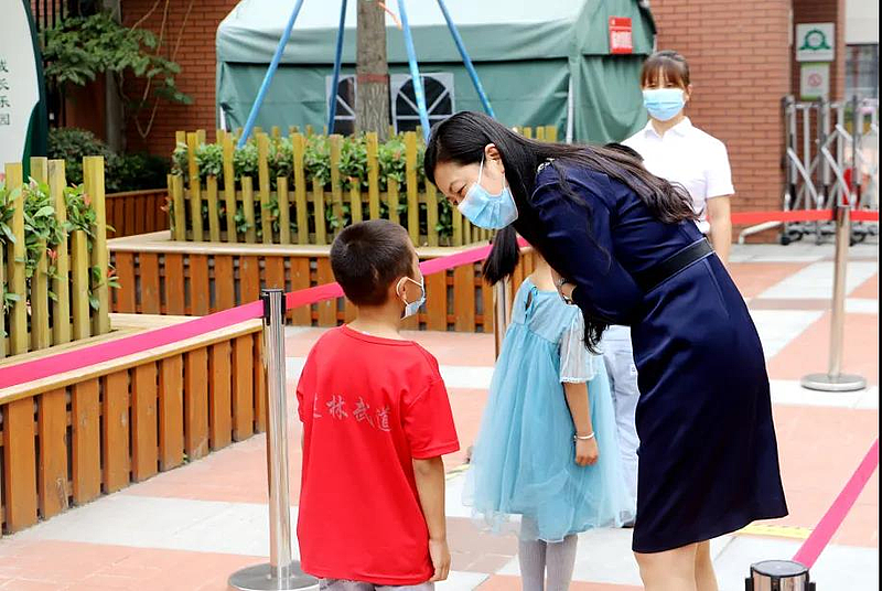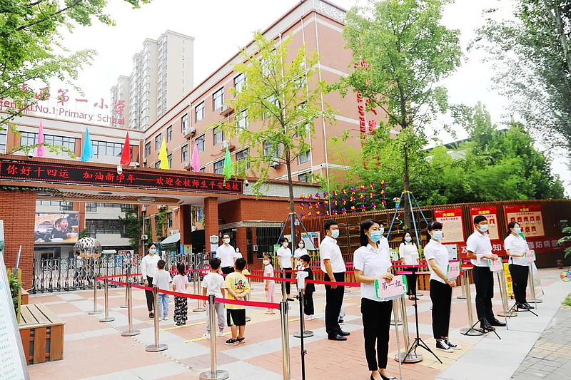 “孩子們,歡迎回家!”早上7點不到,老師們就守候在校門前,等待著許久不見的同學(xué)們。