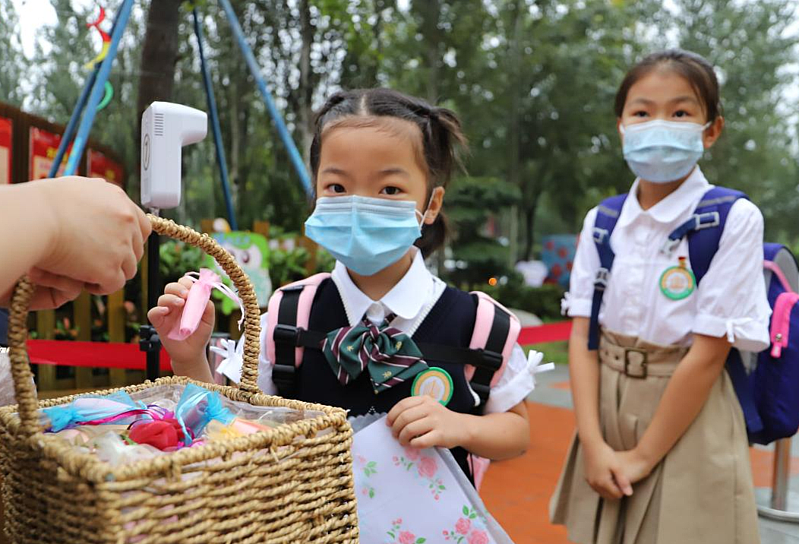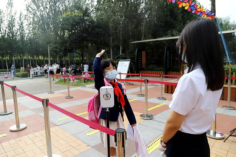 為了迎接同學(xué)們“回家”,西咸灃西第一小學(xué)、西咸新區(qū)灃西新城實驗學(xué)校,早早就做好了準(zhǔn)備,防疫演練、校園消殺、常態(tài)防疫不放松,學(xué)生們按照引導(dǎo)佩戴口罩,一米間距,體溫檢測,整齊有序進入校園。