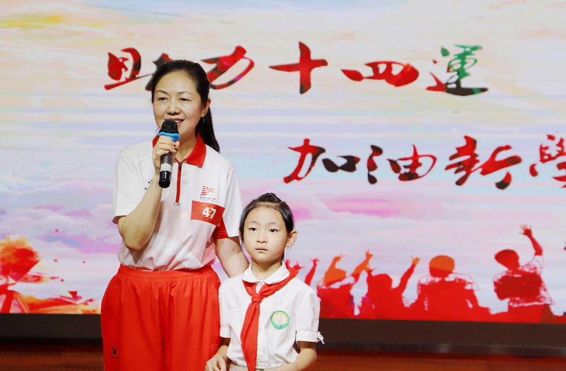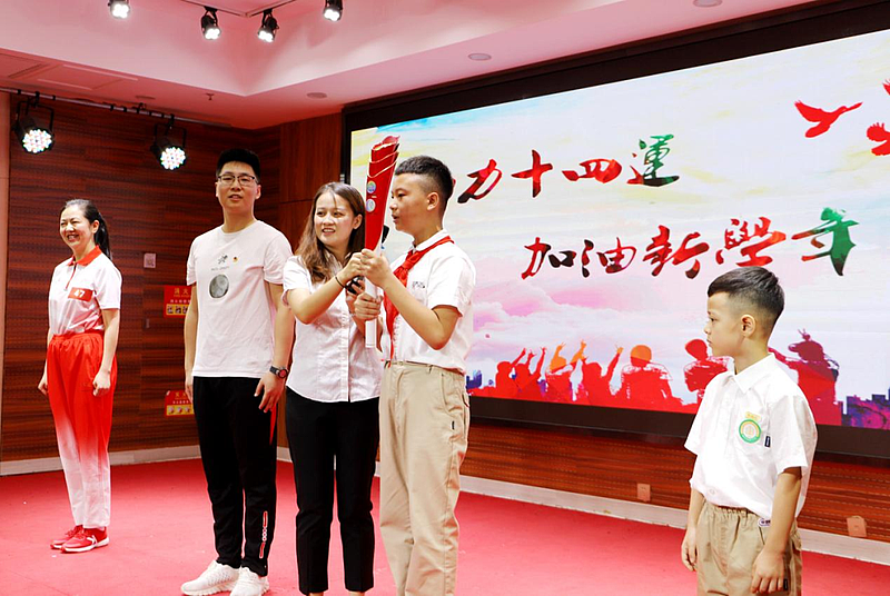 西咸灃西第一小學(xué)校長龔健輝,在以“助力十四運 加油新學(xué)年”為主題的開學(xué)典禮上,分享了參加十四運會和殘?zhí)貖W會火炬?zhèn)鬟f活動的難忘經(jīng)歷。